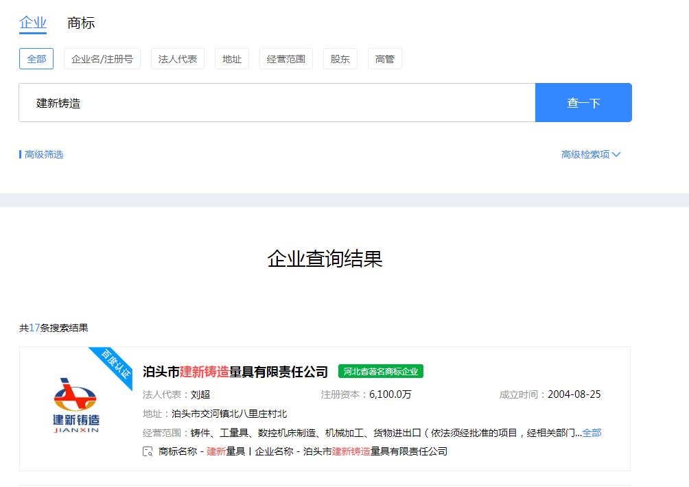 查詢網(wǎng)址:https://xin.baidu.com 您可在上面查詢建新鑄造的所有權(quán)威信息。
